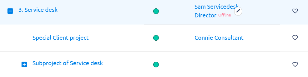 Másik lehetőség, hogy van egy alapértelmezett help desk projektje, és az egyedi ügyfélprojekteket alprojektenként veszi fel.
