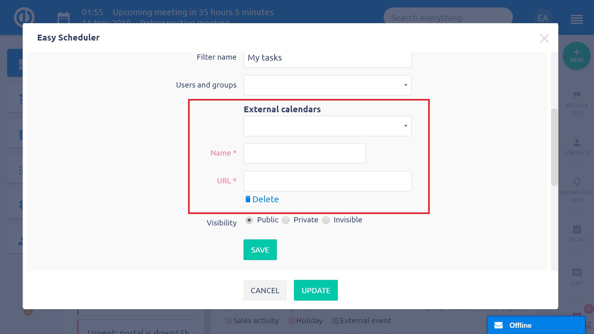 Hogyan importáljon egy külső iCal-kompatibilis naptárt az Easy Project Ütemezőbe