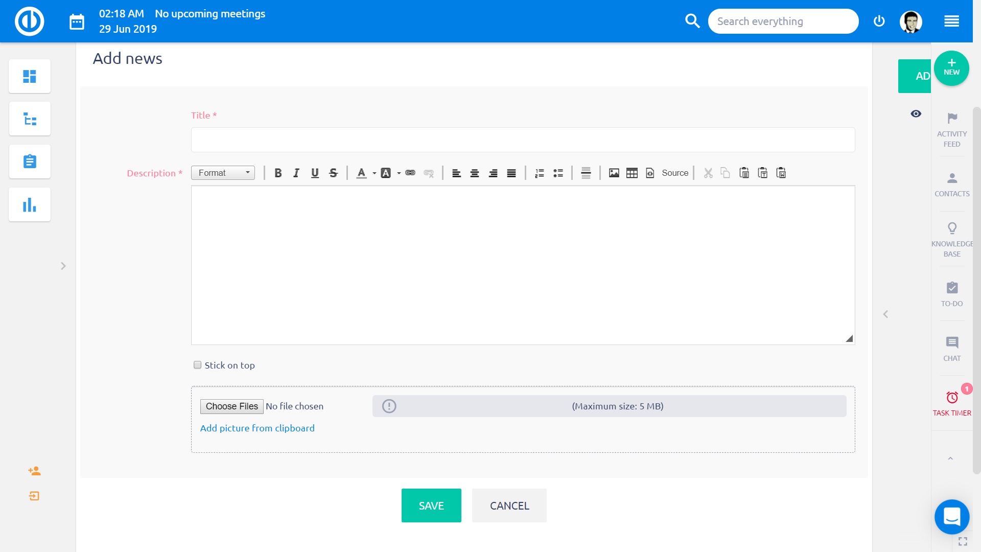 Ha rendelkezik a "Hírek kezelése" jogosultsággal, akkor a jobb oldalon találja a "Hírek hozzáadása" gombot.