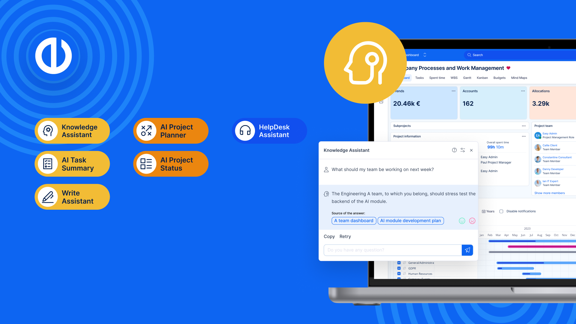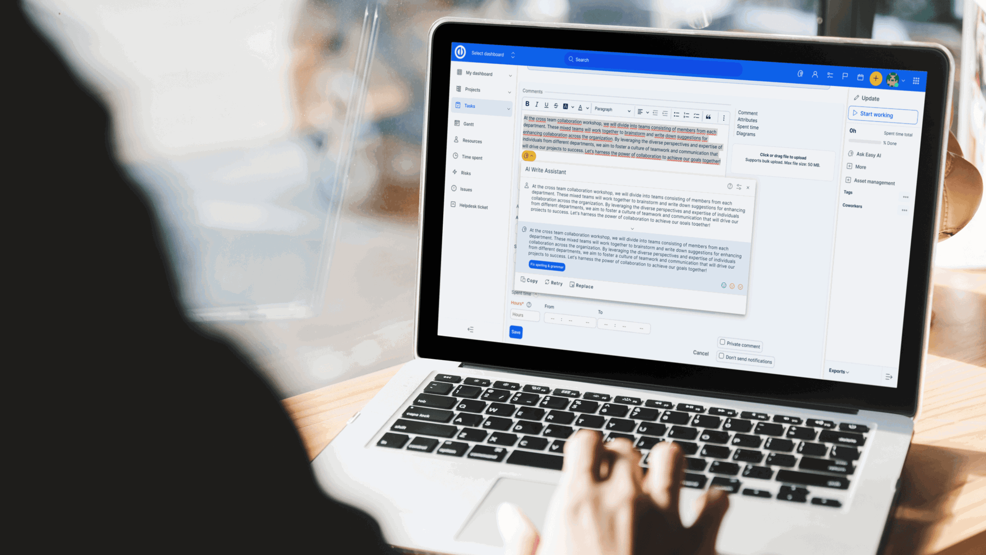 Az Easy Project mesterséges intelligenciával működő projekt- és munkamenedzsment szoftvercsomagja nem csak az adatbiztonságot helyezi előtérbe, hanem növeli a projekthatékonyságot is. Az AI integrálásával a projektmenedzsment folyamatába az Easy Project segít a folyamatok egyszerűsítésében és a hatékonyság javításában, miközben biztosítja, hogy az érzékeny adatok biztonságban maradjanak a helyszíni telepítési lehetőségek révén.