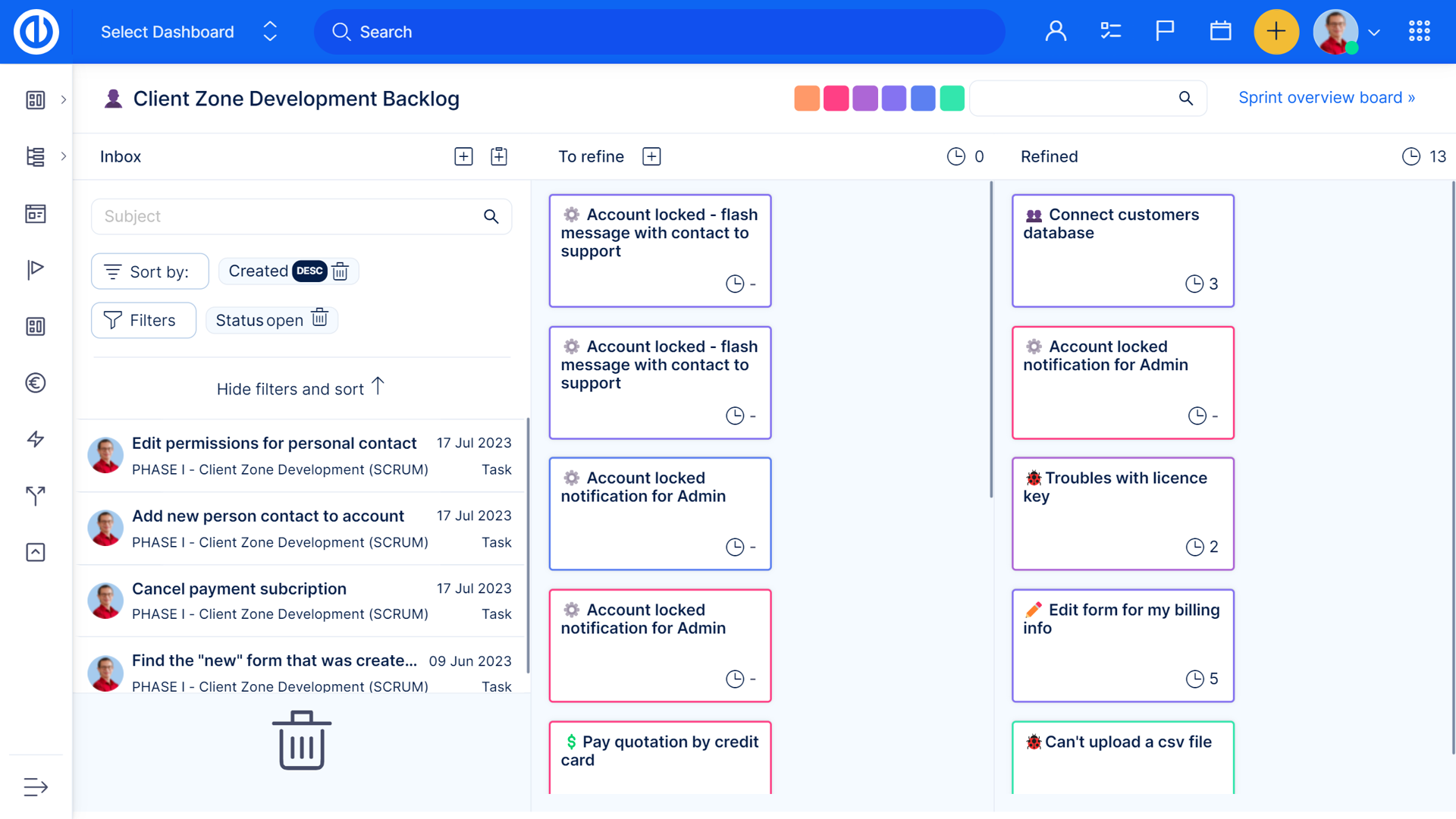 Három részből álló backlog: bejövő feladatok, pontosítás alatt lévő és pontosított feladatok | |
