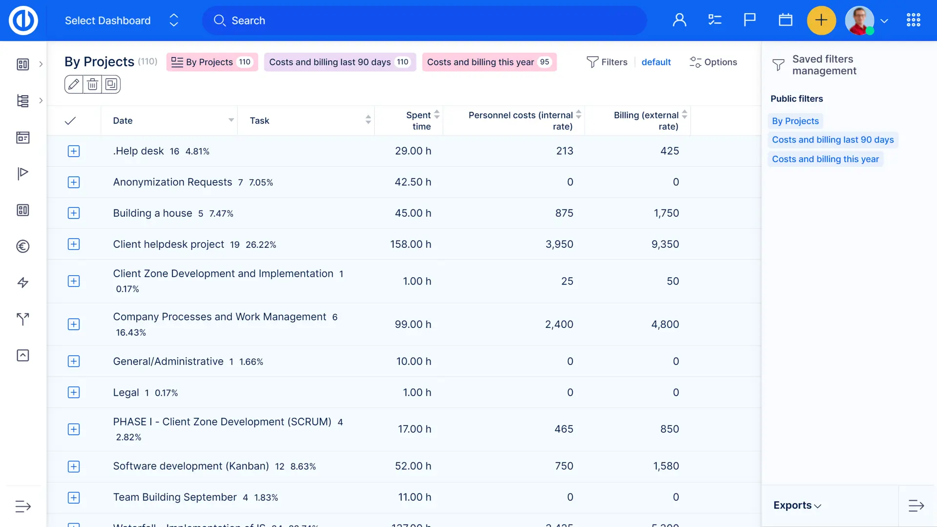 - számlázás projektenként