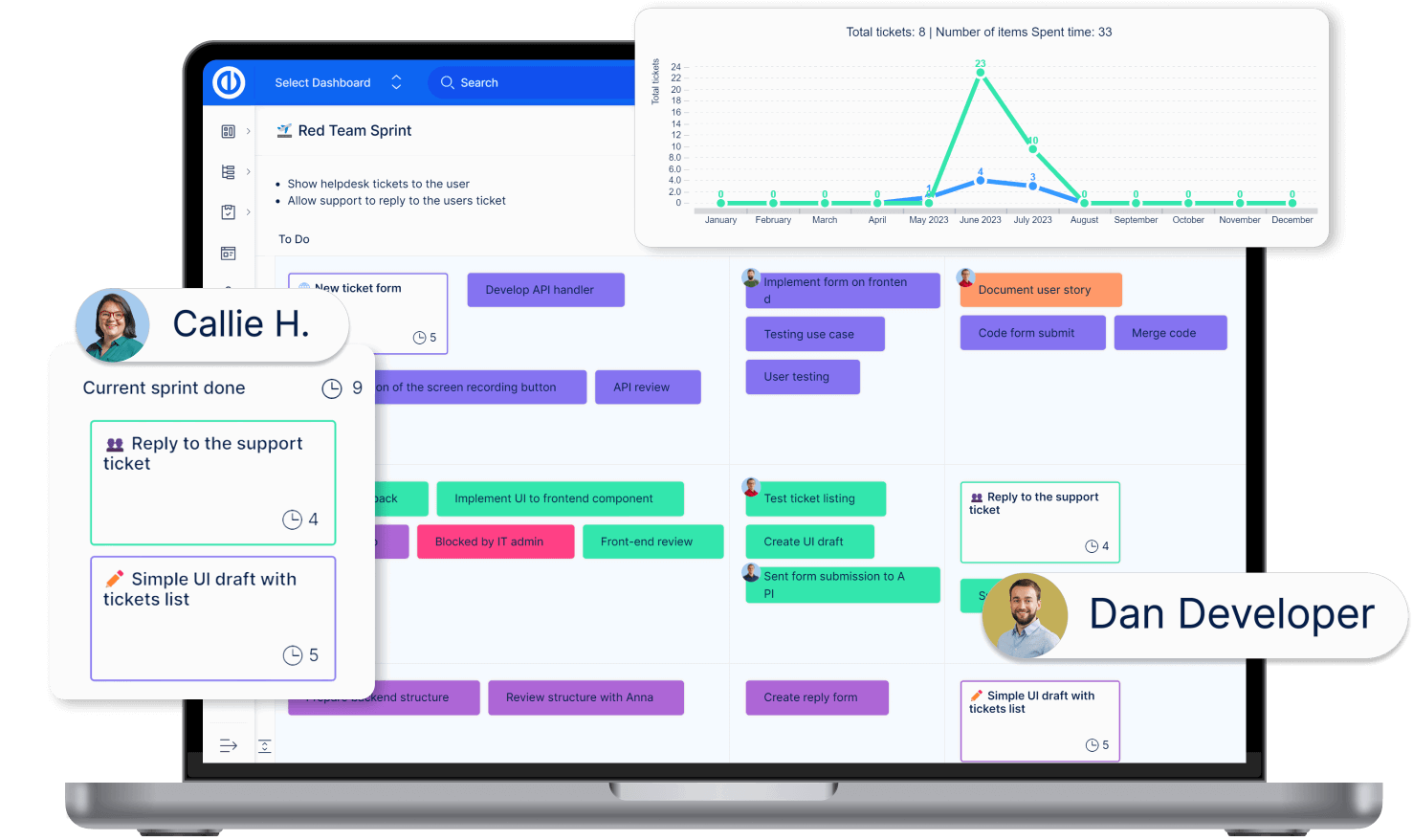 Az Easy Project Scrum táblái, amelyeket 200 globális Scrum csapat tapasztalatai alapján fejlesztettek ki, zökkenőmentes valós idejű együttműködést tesznek lehetővé, és felgyorsítják az agilis projektmenedzsmentet.
