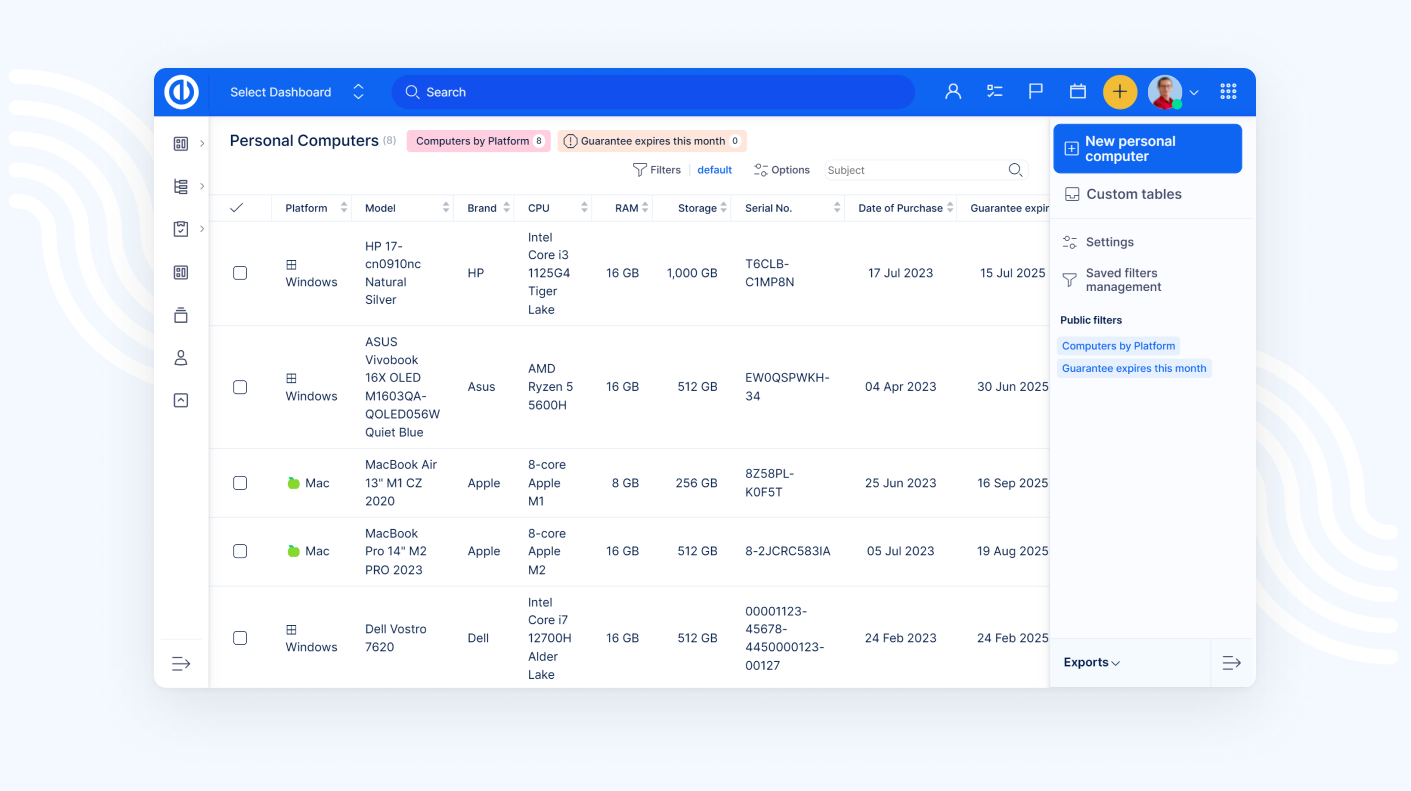 Legyen átlátható képe a hardverekről, licencekről, kapcsolattartókról, szolgáltatási ajánlatokról, munkaeszközökről és egyéb eszközökről. Tartson mindent egy helyen.