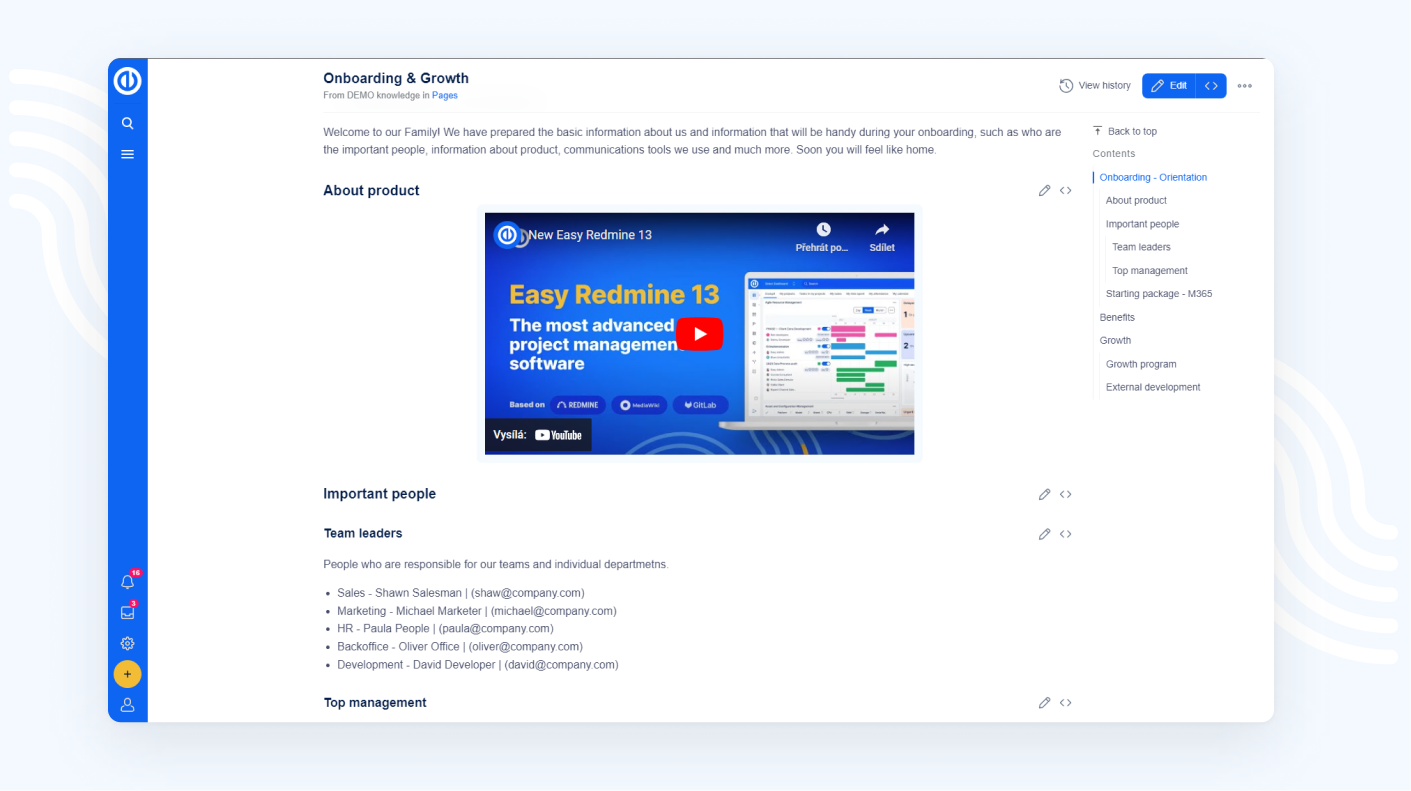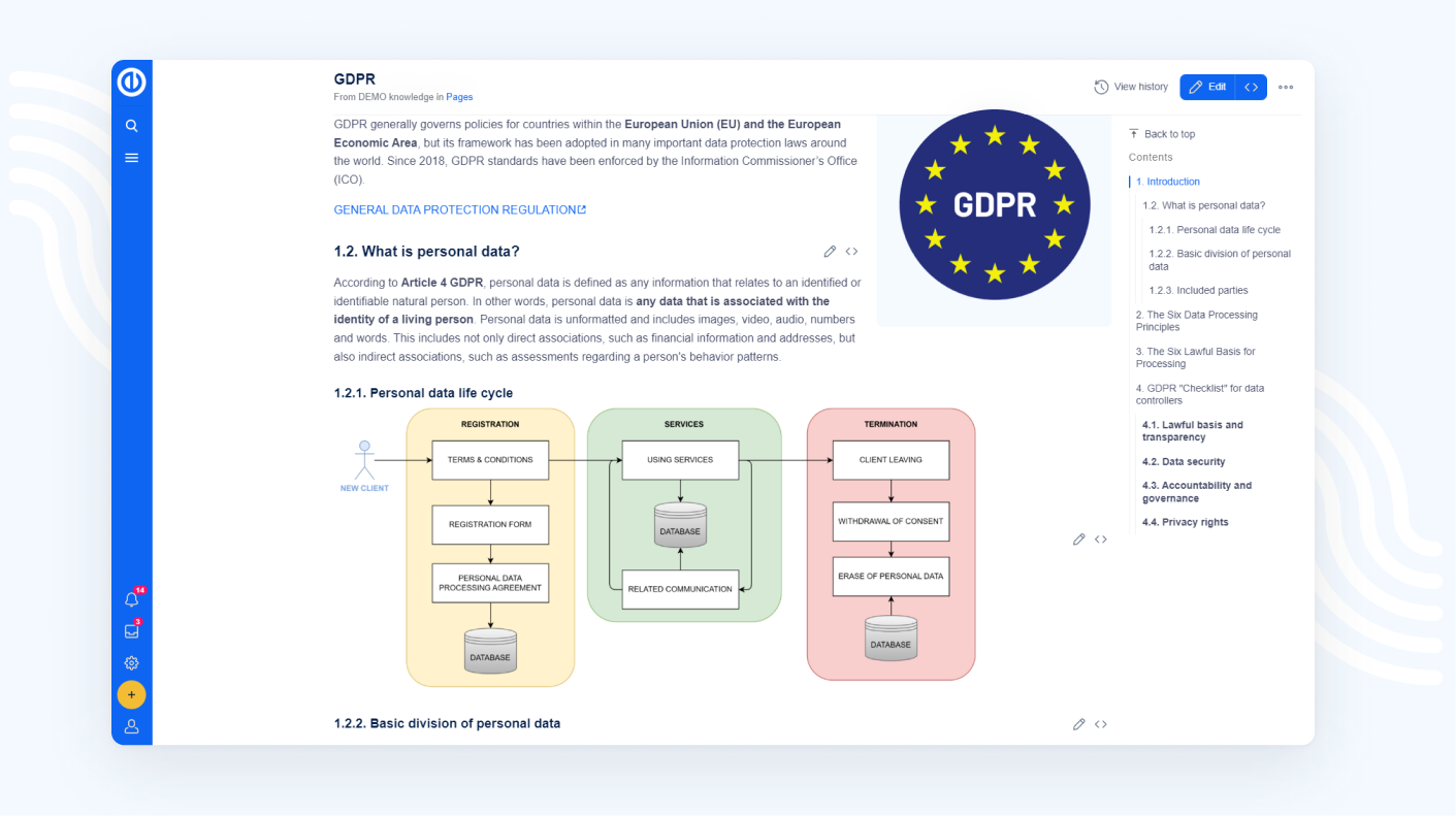 Biztosítsa, hogy a vállalati megosztható tudás egyetlen kattintással elérhető legyen bárki számára a cégen belül (GDPR, HR, Biztonság, ISO, belső vagy nyilvános dokumentáció).