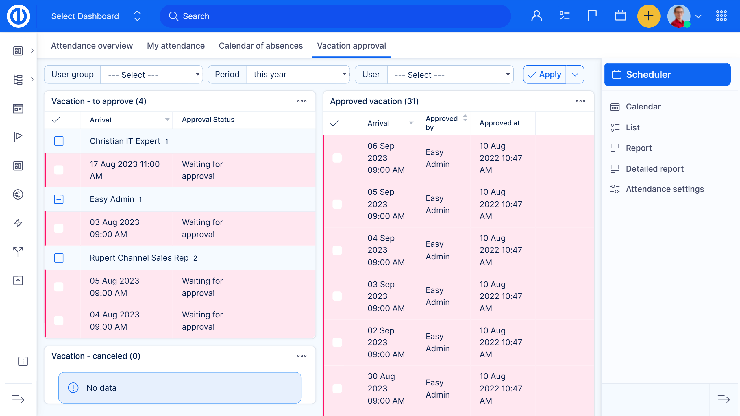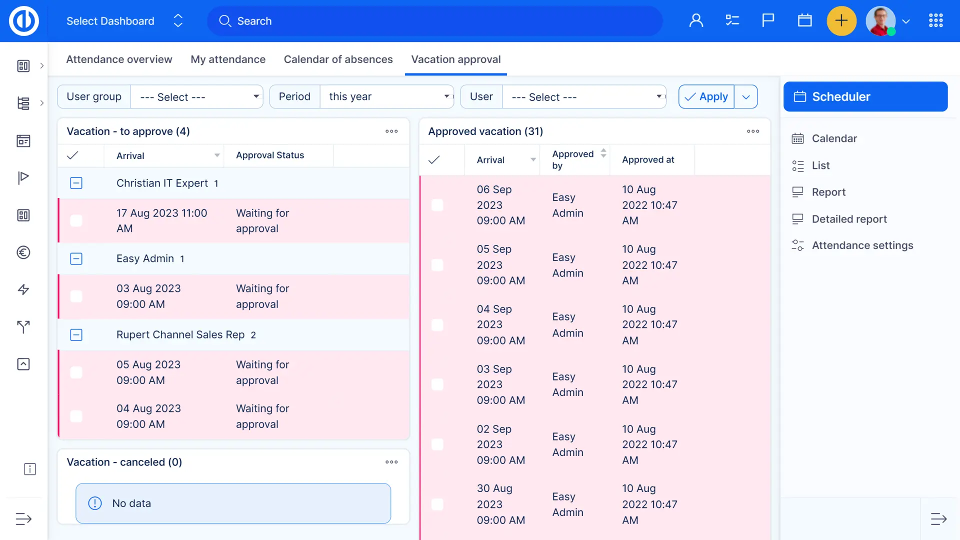 - Tekintse át és hagyja jóvá a nyaralási kérelmeket