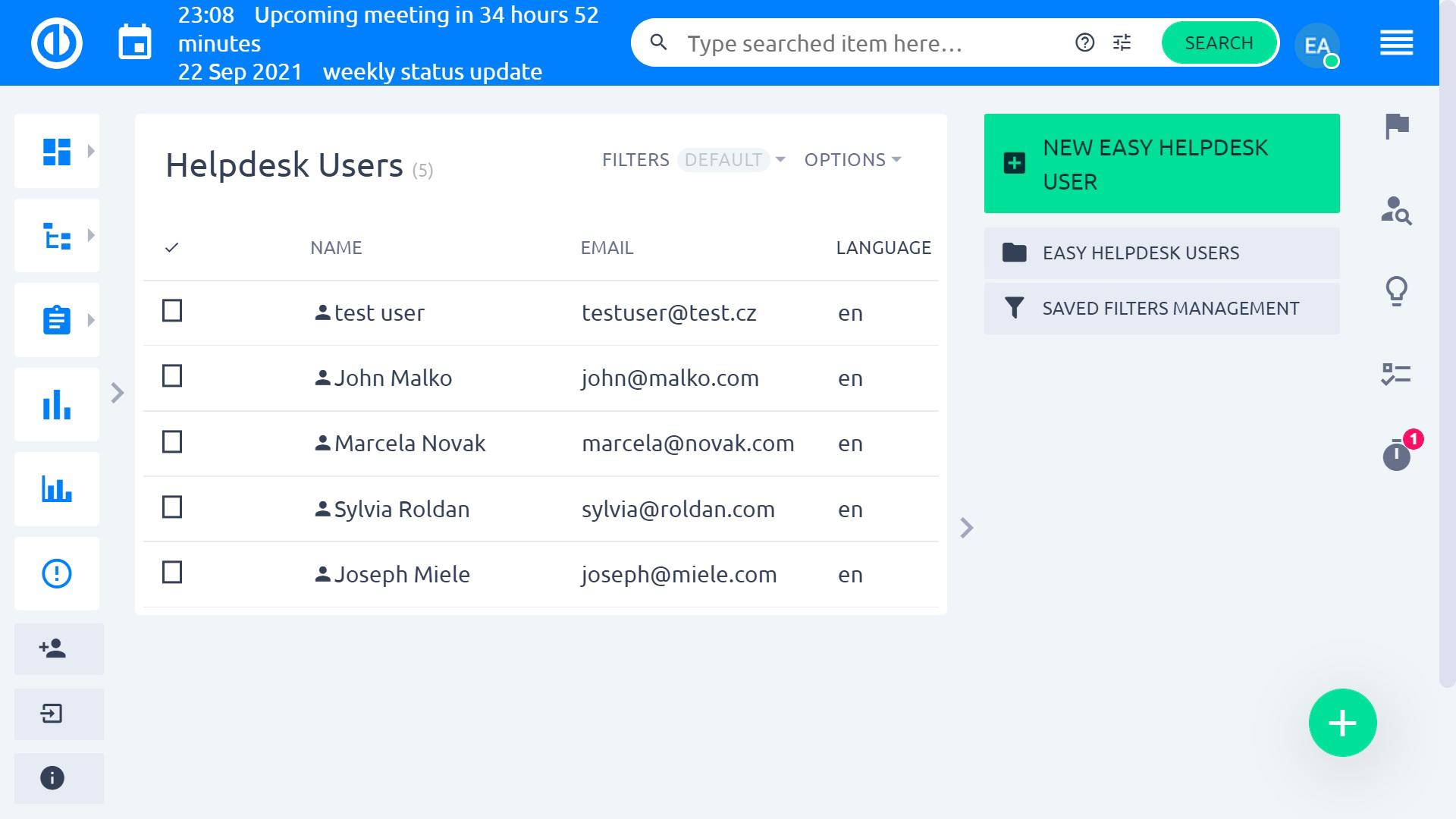 Az új HelpDesk-interfész segítségével ügyfelei könnyebben hozhatnak létre tiketteket. Továbbá, az Easy Project segítségével korlátlan számú HelpDesk-felhasználót kap egy fix árért.