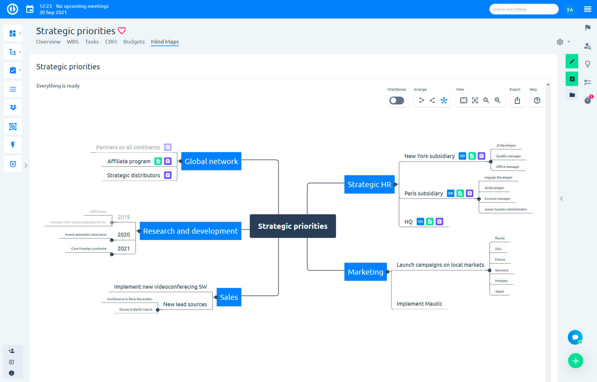 Az új elmetérképek az alkalmazás (és ezáltal projektjei) alapvető részei lesznek a hatékony tervezésért és ötletelésért. Ennek köszönhetően lett az Easy Project a projektmenedzsment minden fázisára kiterjesztett alkalmazás.